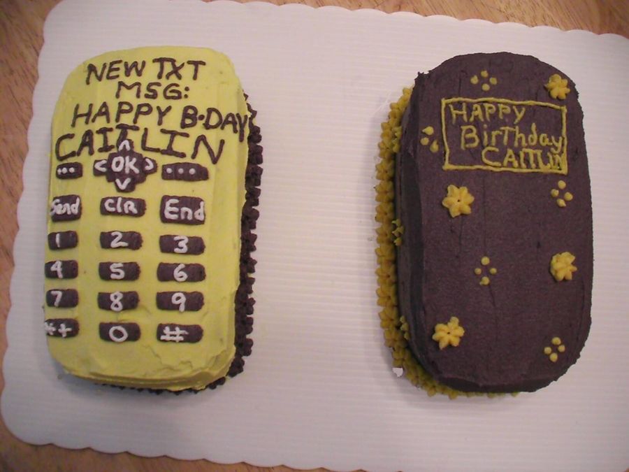 Cell phones for a young pre-teen who is eager to get one now that she is "old" enough. She thought the cakes were cool. I used a 7" square pan cut in half and then slightly carved the two halves. I had fun trying to accomplish this one. It's simple but effective. Again, still have to practice on my writing.