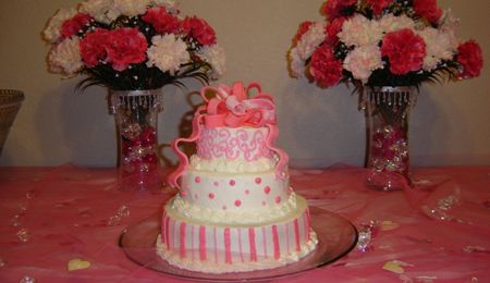 Well, I forgot to mention that I worked on this cake while the electricity was out. My first cake actually did have each tier the same height - much easier to do with the electricty on! Also, I want everyone to keep in mind that I have never taken classes - I am self taught and have only been at it for about 4 months!