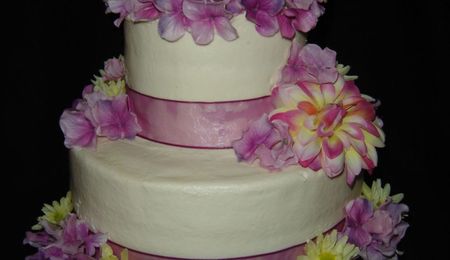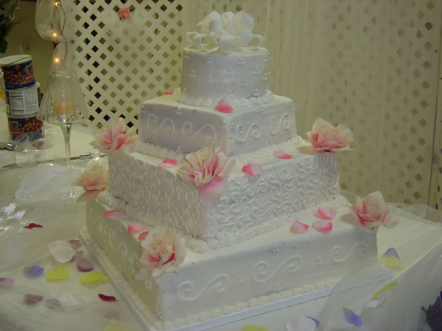 My secong wedding cake, my first one was just a week ago. I know I have a long way to go, but I think it looks ok considering. The bride was pleased (She was a very pleasant costumer)