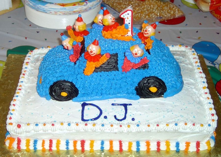 This is my first attempt at a 3D cake. I got the idea from a Wilton year book. The sheet cake is filled with barvarin creme filling and the rest is BC except for the clowns