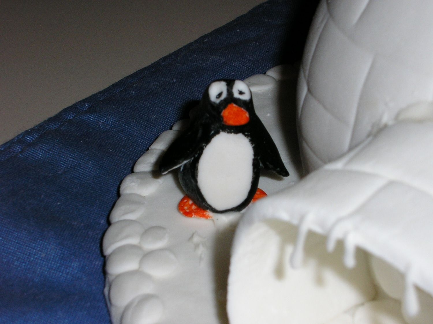 sponge cake, buttercream and fondant, sugarpaste pengin