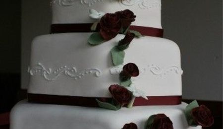 Hexagon With Gum Paste Burgundy Roses