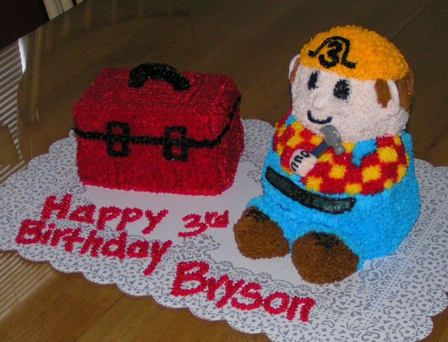 My mother and I used the bear pan for this and just shaved off what we didnt need. We used a loaf pan to make the toolbox. This was a cute cake in the end. Everyone loved it!
