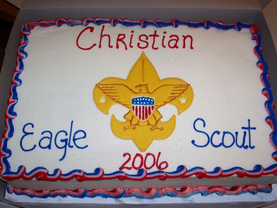 Color flow Boy Scout emblem on BC frosting.