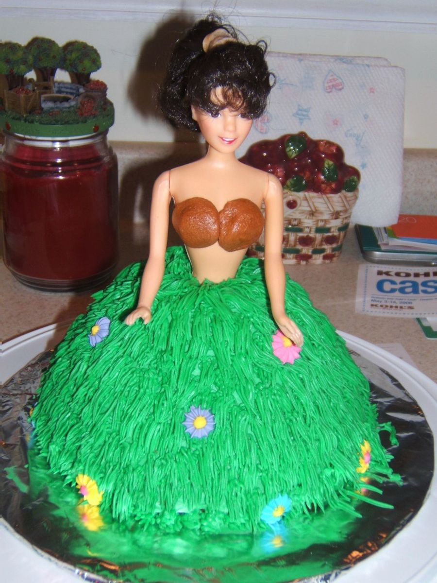 this cake was made for my friend's bridal shower, it was a hawain theme party. The skirt was made with the grass tip using buttercream icing