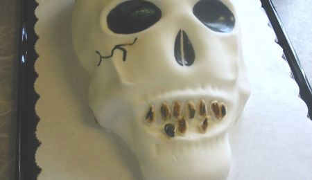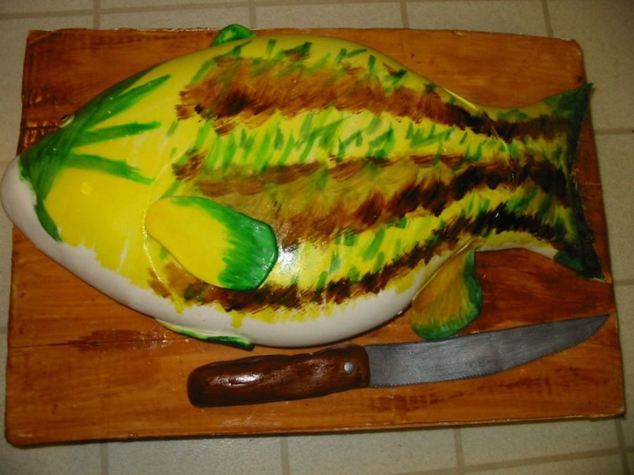 This is covered with marshmallow fondant. The cake board is also covered in fondant to look like a cutting board. I also made the knife with fondant.