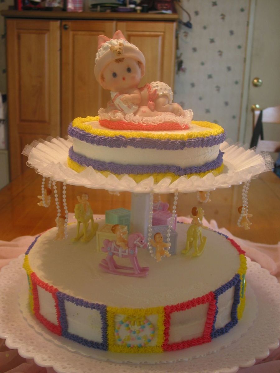 I recently made this for my sister-in-laws baby shower. It was very easy. I just used the glue gun to glue the babies onto the horses and onto the pearl swing.