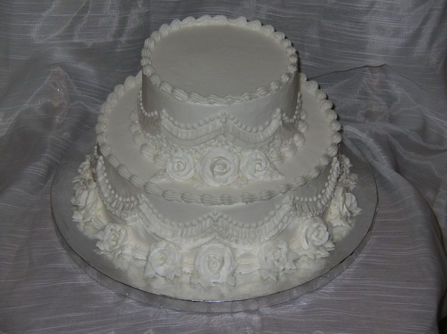 I had someone call me on Friday for a cake for the next day. It was for a small wedding so I was able to put this one together for them. I got the idea from a Wilton book but made a few modifications.