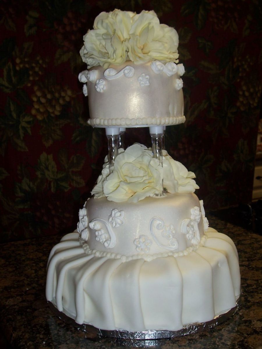 Thank you! I'm new at this and the scrolls were made out of royal, not fondant. The roses are silk. I was sick last week and did not have time to make my roses.