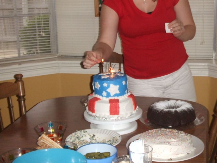 This was the cake I made for the 4th! The top layer had Bailey's Irish Cream and white choc. filling and the bottom layer was a Kahlua and choc. filling! it was YUMMY!