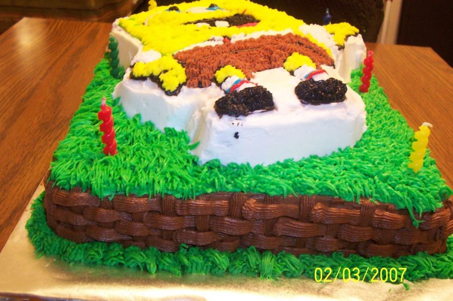 Did this for a 3year old's birthday party. I use the tio to do grass all around sponge bob, and did basket weaving around the sides for to look like a fence.