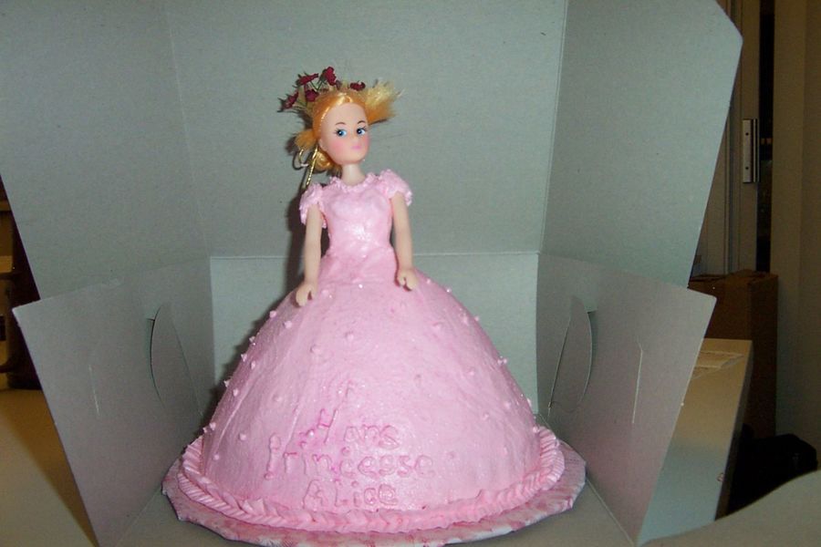 This cake was for a 4 y-o little girl that wanted a princess cake, all pink! Her mom was so happy with the results when she came to pick it up. She was the one to bring the doll pick. It was a cheap one, so I had lots of difficulties to make a nice hair do. At least she was happy with it! The cake is chocolate with BC icing.