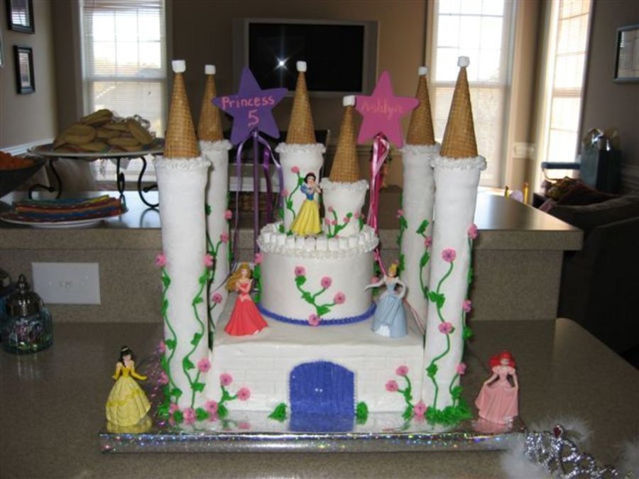 Finally!!!finished this cake for my princess grandaughter who turned 5. I want to give a special Thank You to meomy who inspired me to try this and gave me detailed instructions. The cake was no problem but my first experience with fondant for the turrents was difficult. I took the Wilton classes 25 years ago..I think I need a refresher course. Again Thanks for all of the help,