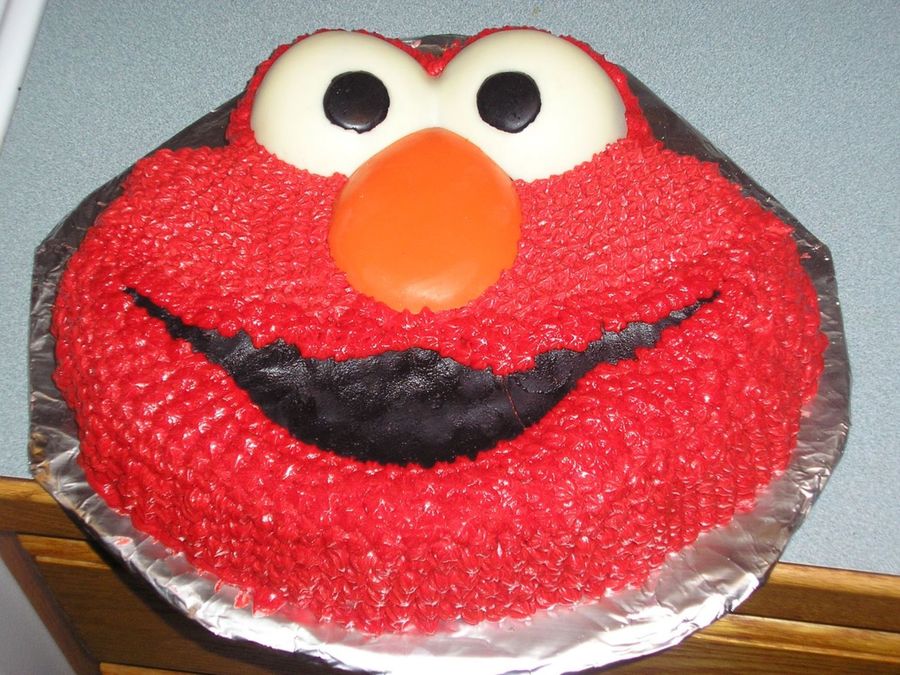 This was my first experience with an egg free cake but it held up very well, much better than I expected. The eyes, nose and mouth are made from candy melts formed in the Elmo pan.