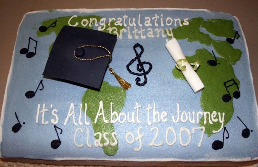 graduation cake for a music major. buttercream with fondant cap and certificate. The theme matched the napkins.