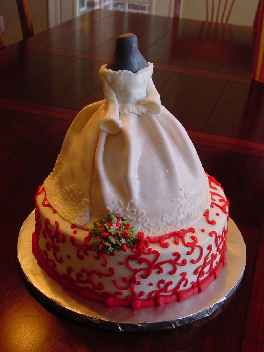 Oh man. Yes, I made a wedding gown cake. After a misunderstanding I decided not to make my original idea of the Wilton Court of Colors. She only has one brides maid. So after scouring this website we decided on the wedding dress. Two days before cake was due she sent me the picture of her dress... IT HAD SLEEVES! Another wrench thrown in my plans. Yikes!