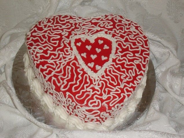 Cherry chip cake with cherry Koolaide frosting and BC. Just using up left over icing that had already been frozen once. I've never had the courage to try Cornelli lace, I definately need more practice but it turned out kind of cute for a first time try. TFL