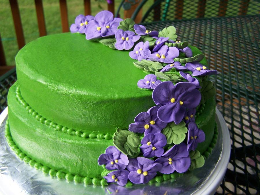 This is just a small oval yellow cake. This was donated to a couple in our church, the wife just passed-it is for the funeral on Thursday. BC with RI Violets. Commetns welcome... :)