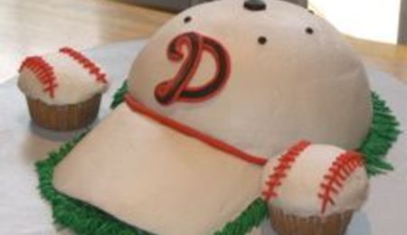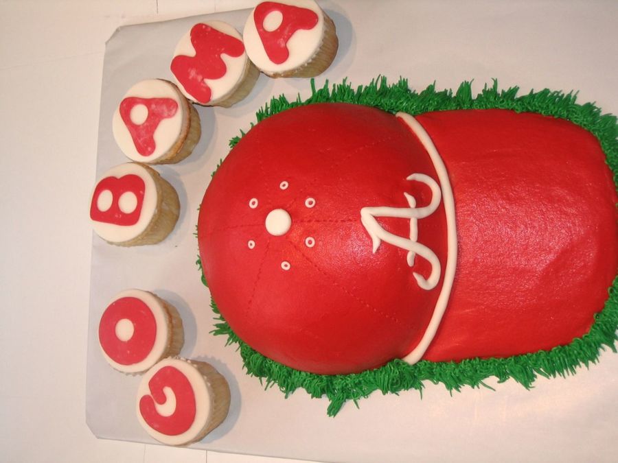 I used a round ball pan for the hat, bill is a sugar cookie with buttercream with fondant accents.