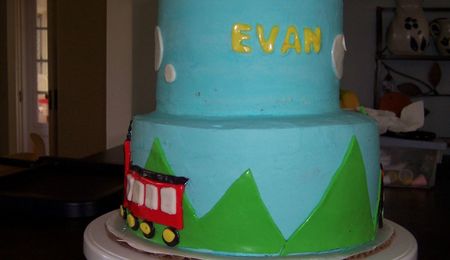 chocolate cake with a raspberry and vanilla bc filling, covered in bc and decorated with mmf