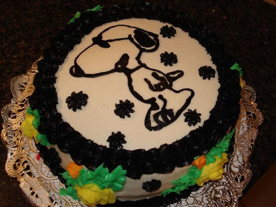 I made this for a friend who got a new puppy this week. It was my first FBCT. I believe it would have looked better just in black and white, but I wanted to use up some of my practice royal icing roses I made last week. :o)