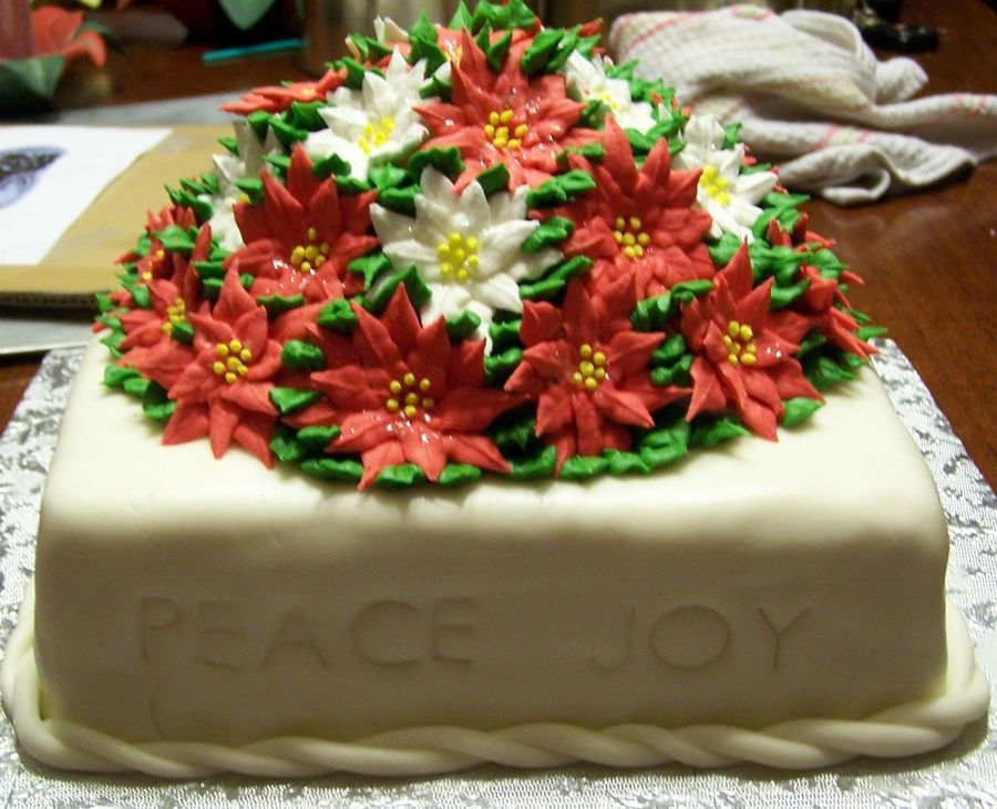 I really like your poinsettias....very pretty Christmas cake!!