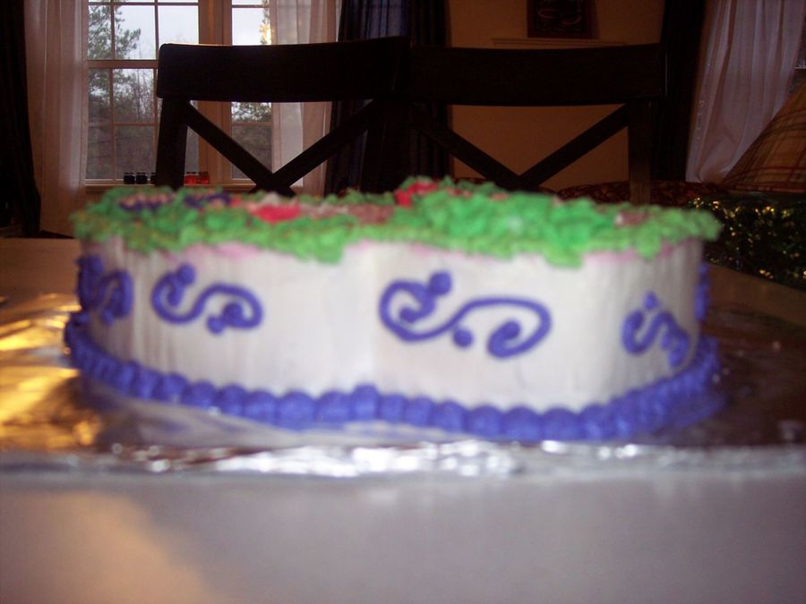 SIde view of matching cake made to go with Tinker Bell sheet cake for my daughters b-day.