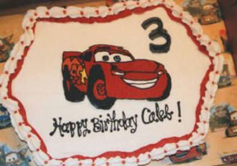 CCC for a 3 year old! Simple white cake with buttercream frosting. FBCT of "McQueen" - my very first one!