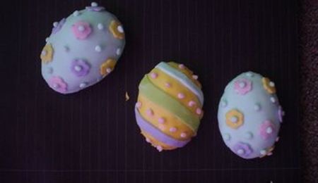 I stuck a gumdrop in a toothpick-stuck that into a piece of styrofoam(to dry) draped circles of fondant over them