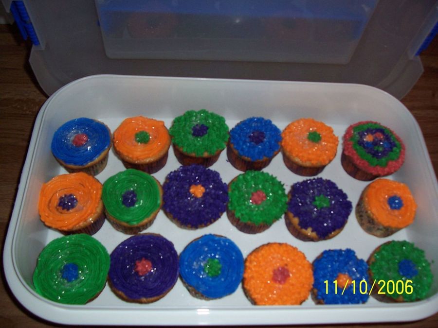 This was the 1st stacked cake that I have ever made. She wanted a "crazy cake with bright, mix-matched colors" I think she liked it! OOPS - that was the cupcakes!