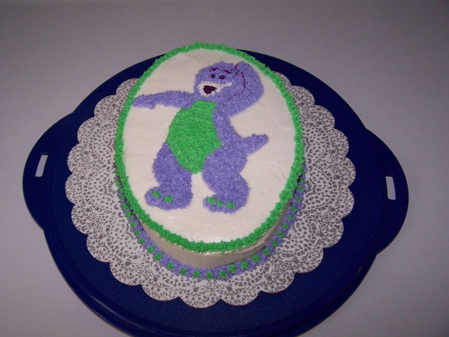 I call this ghetto Barney....it was my first attempt at picture tranfer with piping gel.....it really isn't too bad except for the mouth...kind of funky looking. It was for my DGD's 1st birthday. She loved it!