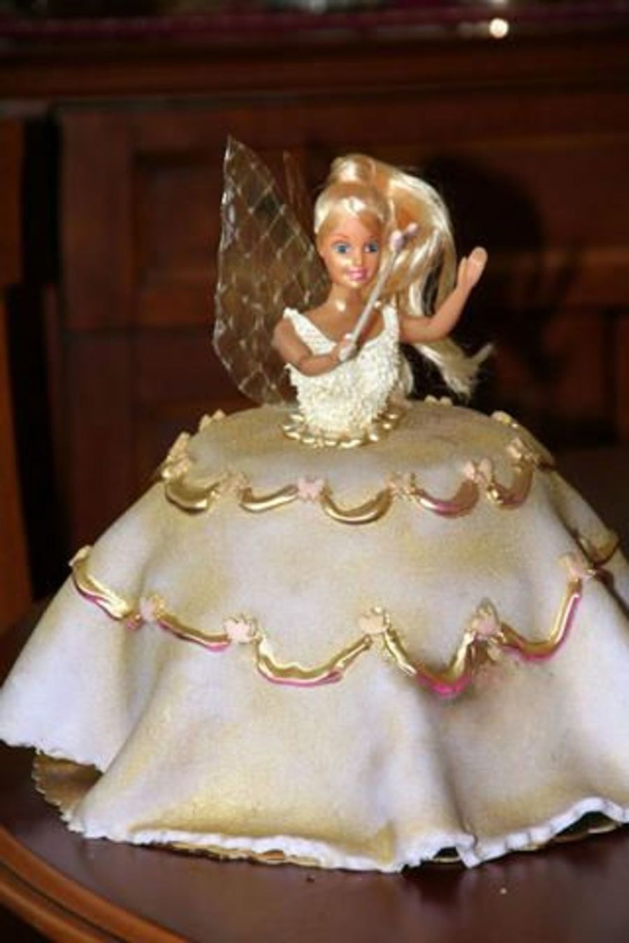 Skirt made of sugarpaste, body is made of royal icing. Fairy wings are made of gelatin sheets.