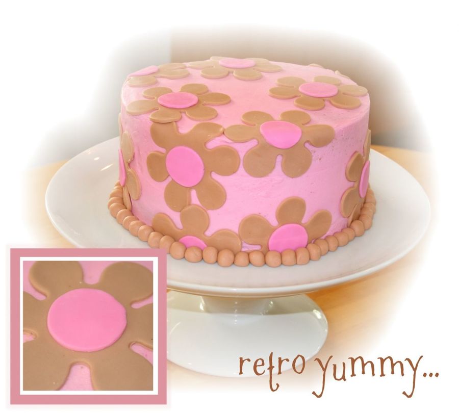 This is a two-layer spice cake with buttercream icing and fondant flowers.