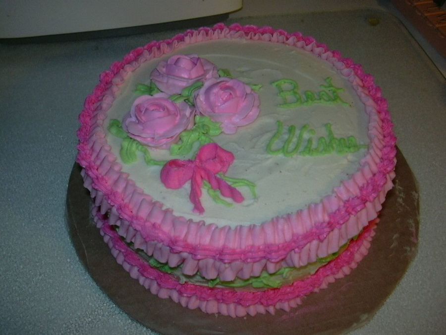 I took a class at the local high school and we learned to make roses. They aren't perfect but I was proud. This was a cake I decorated at the class.