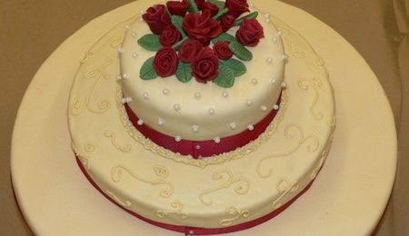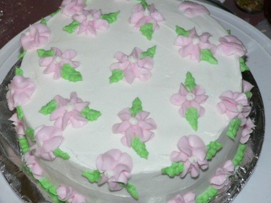 Wilton class I, pink drop flowers with leaves. Second cake done.