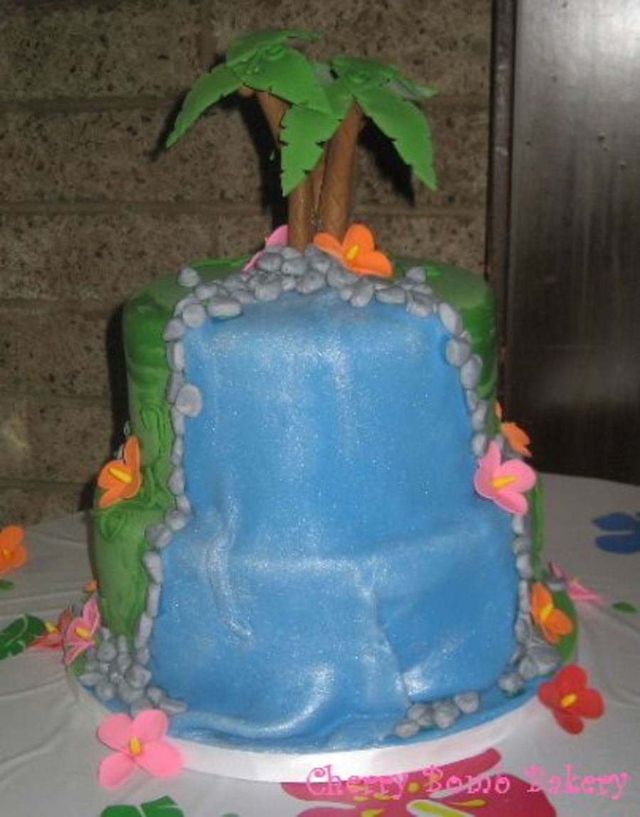 I used a lot of the cakes here for inspiration. Thank you to everyone who was kind enough to answer all of my questions. I had some trouble laying out the fondant for the "waterfall". I think it was a bit too big and didn't lay a ripple in the right places. I'd love some more suggestions on how to go about this.