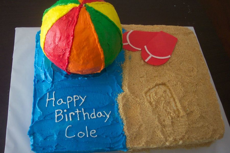 Made with sports ball pan. Flip flops are fondant cut from large heart cookie cuter. Sand is Nilla wafers, graham crackers, & sugar in the raw. Thans to Nicolesatryin for help with this one.