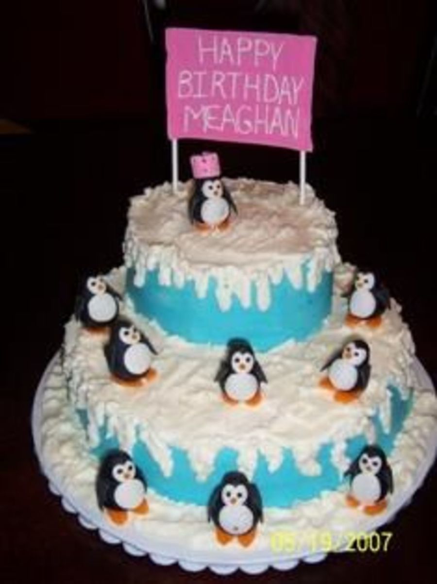 My DD loves Penguins and wanted a penguin cake for her birthday. I looked through the pictures here on CC and got many ideas. Thanks for everyone who has done a penguin cake so I could get some ideas from them. I was afraid the penguins would be hard to make but they were very easy!