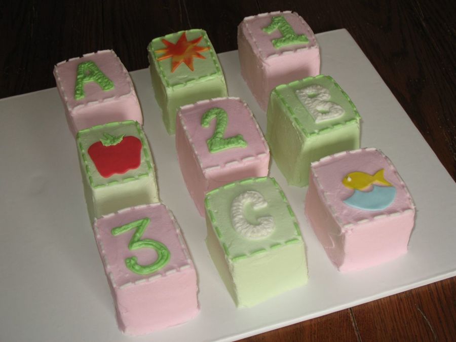 I love this. Very nice. I saw this idea on the Martha Stewart web site she suggested using a sheet cake and cutting it into blocks. Maybe that would be easier for next time.