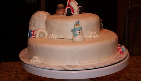Christmas Cake With Santa, Snowman, Penguins, And An Igloo.