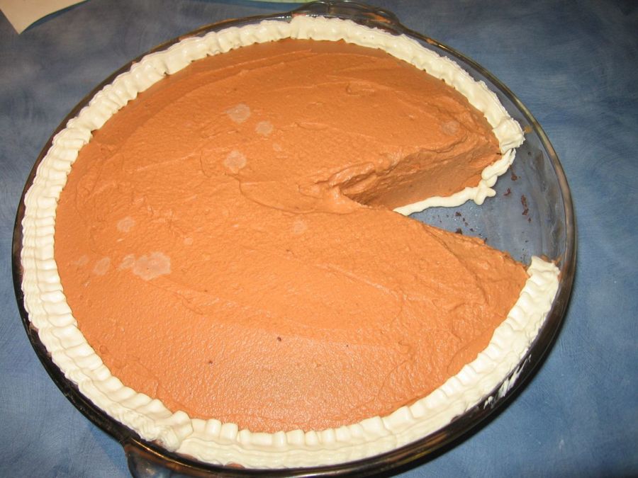 Thanks to Satin for the idea. My Aussie DH doesn't like the real thing so thought I'd try this. Chocolate cake with whipped cream icing. Thought it turned out cute but DH didn't know what it was when I showed him. He thought Pac-Man maybe. LOL!! Oh well, I thought it was cute. Although my cream dripped out the top of the decorating bag and left spots on the top.