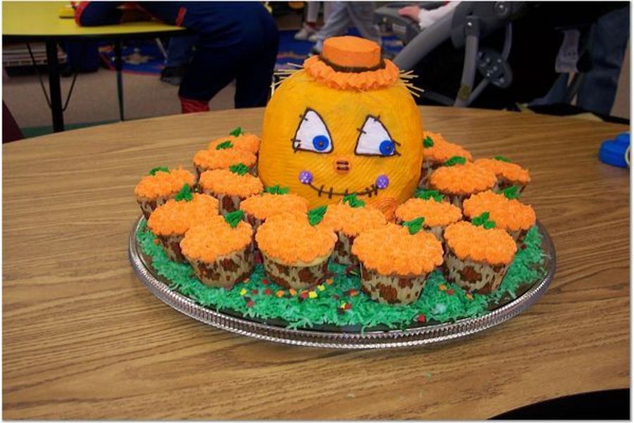 The 3D pumpkin pan from Wilton. I don't think its been discontinued so you should probably be able to find it at your local craft store. Also, he is supposed to be a scarecrow! :)