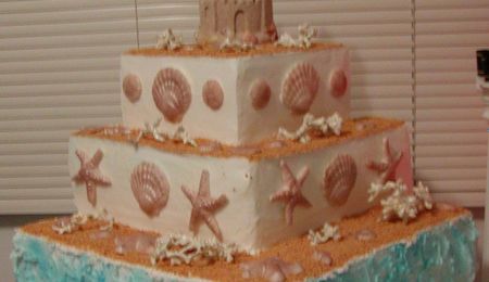 This is very much like one of my other cakes. The couple made a few changes. I learned from anothr CC member to use Grape stems for coral. Last time I coated them with white chocolate, this time I used RI. The shells are made with gumpaste, candy molds and luster dust. Thanks for looking.