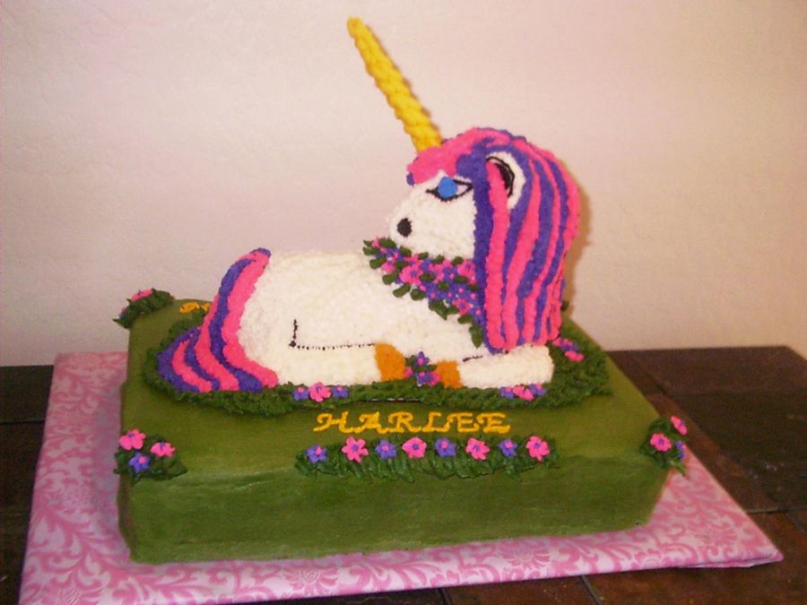 Forgot to add...all buttercream, except for flowers and horn, which are royal. Bottom cake is covered in chocolate buttercream colored green.