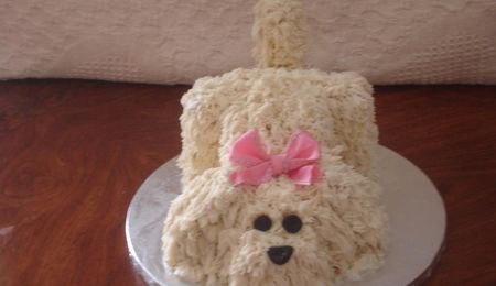 Thanks, I actually got the idea form cc. It's a 2 layer, 6 inch cake, carved a little, w/ball pan on top. Covered in buttercream, fondant accents,