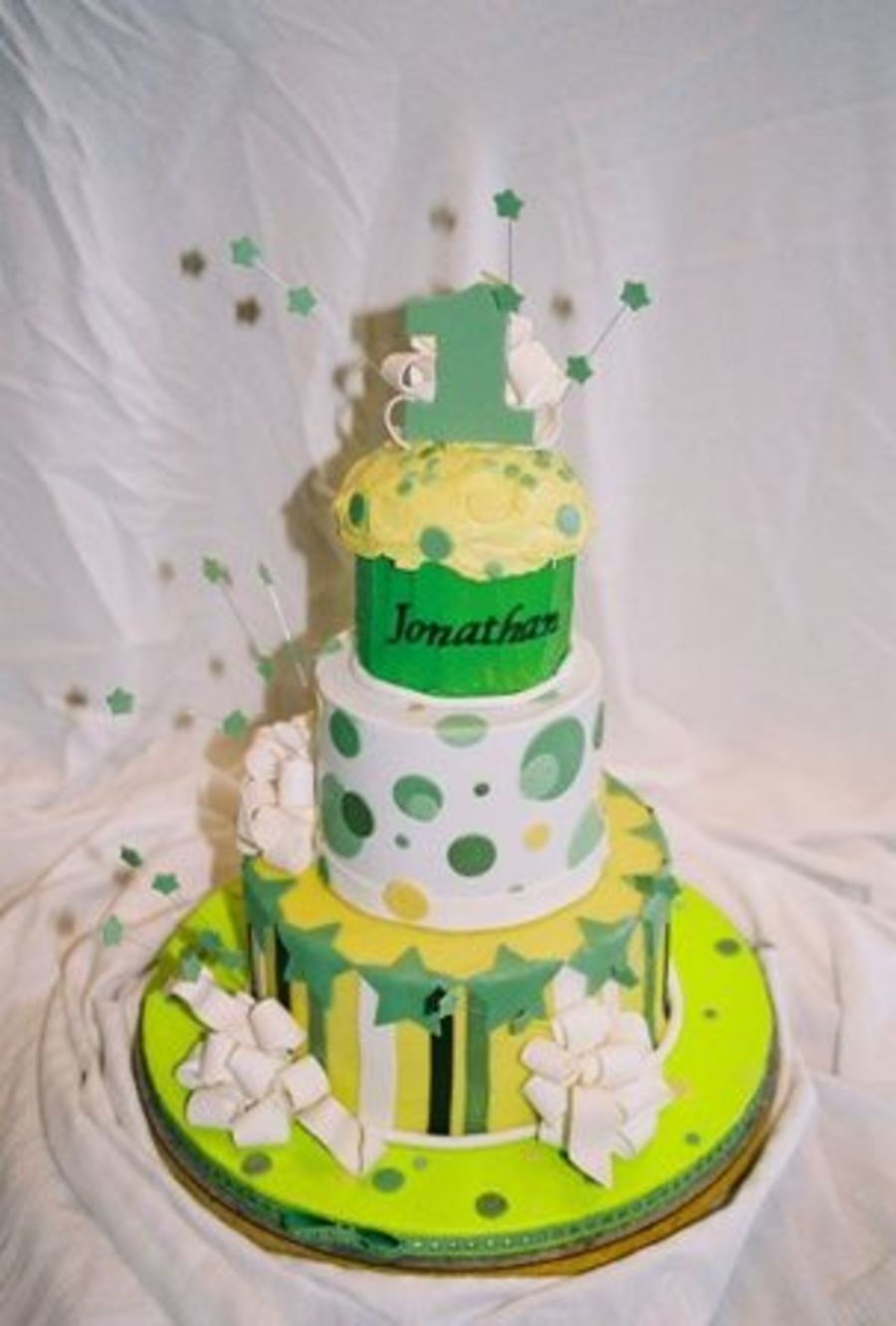 This was inspired by Sugar Creations. The mom didn't want to change much about it, except she wanted it all in BC w/fondant decorations. I think it would have been better in fondant, but oh well. This pic kinda sucks b/c I had left my digital camera somewhere and had to take this w/my 35mm!