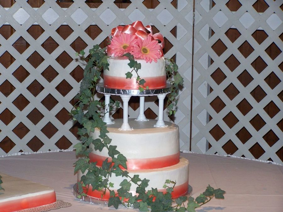 this is my first try at a tiered and stacked cake. It was also my first wedding cake. I don't think it turned out to bad. The top and bottom are french vanilla with buttercream frosting. The middle is chocolate with btc. It was an interesting experience.