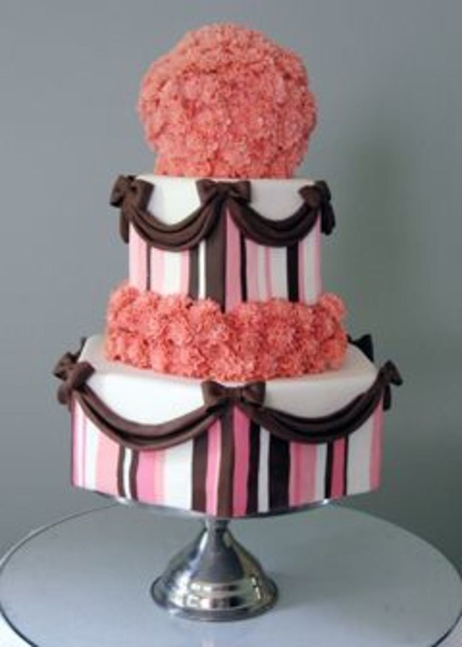 Oh WOW!!!! What an absolutely gorgeous cake!!!! The colors are fantastic! Love the chocolate swags and bows, and your carnations are amazing!!