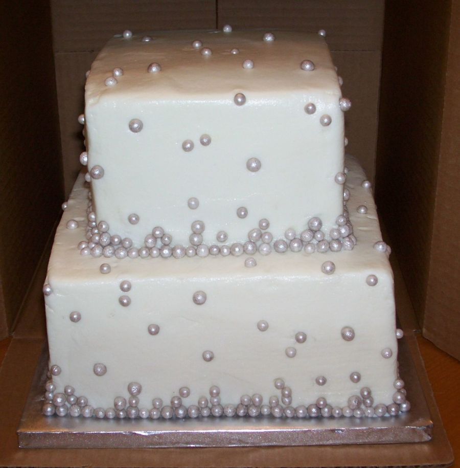 This cake was inspired by "The Cake Lady" in Richardson, Texas. It is found in this month's "The Knot--Texas" magazine. SInce dragees are not edible, I opted for silver dusted fondant pearls. Chocolate fudge cake with white chocolate ganache filling and raspberry filling covered in buttercream.