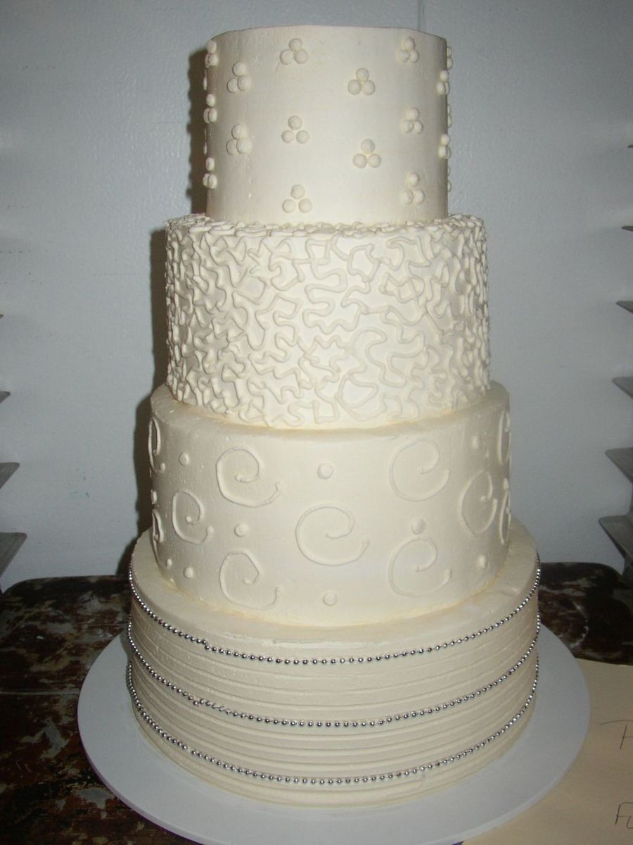 This was my first wedding cake I decorated at work this week! It was very scary and stressful, but alot of fun once I got over my nerves. Hopefully I will get better and better. Everything is ivory bc.